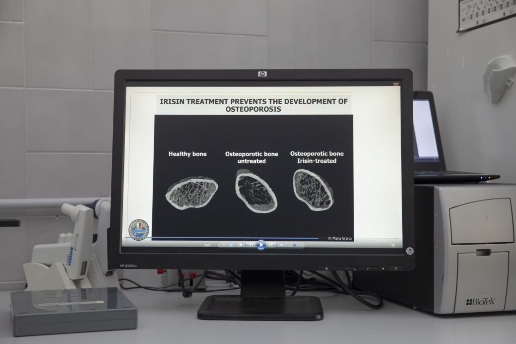 Enfin, un résultat important obtenu dans la dernière expérience envoyée à bord de l’ISS, impliquait l’action d’une molécule appelée irisine, une protéine produite par les cellules de nos muscles lors d’une activité physique. Nous avions déjà découvert, dans un environnement terrestre étudié sur des souris sous hypogravité, son rôle anabolisant sur le muscle et l’os. En fait, l’administration de la molécule à des animaux en cours de développement d’ostéosarcopénie a pu prévenir à la fois la réduction de la masse osseuse, et donc l’ostéoporose, et la réduction de la masse musculaire, donc la sarcopénie. Cette molécule testée sur des cellules osseuses à bord de l’ISS a révélé que son action est également efficace sur des cellules maintenues en microgravité où elle était capable de contrecarrer les effets négatifs de la microgravité sur les cellules osseuses. Par conséquent, les gènes qui étaient surexprimés sont revenus presque à un état normal tel qu’enregistré sur les expériences au sol réalisées en parallèle.