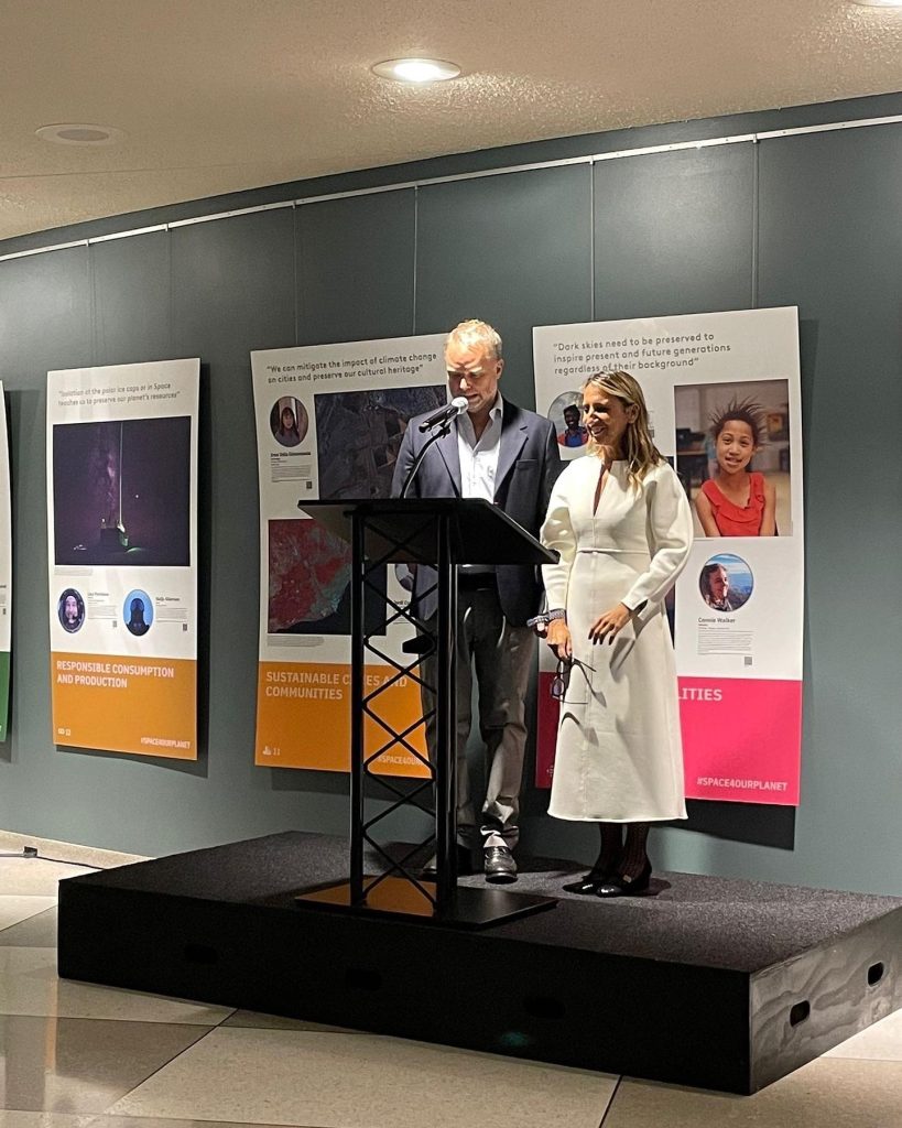 Introduced by the curatorsn Fiorella Coliolo and Benoit delplanque, the event sees the participation of Niklas Hedman, Acting Director, UNOOSA, Eduardo Ramos, Chargé D’Affaires a.i. Deputy Permanent Representative of Portugal to UN, Heriberto Saldivar, Head of Foresight, Strategy and Coordination Deartment, ESA, Sveva Iacovoni, President Spokesperson, ASI ; Maria Rosaria D’Antonio, Head of Administration, IAU ; Zainab Azim, GIVE Founder and Virgin Galactic Future Astronaut.
